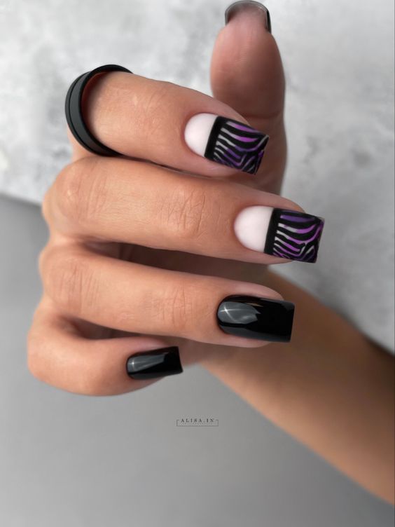 For the bold and adventurous, these black nails with purple and white zebra stripes are a must-try. They’re a celebration of the wild and free spirit of summer. Pair these with a leather jacket and boots for an edgy look, or with a purple and black summer dress for a fun day out. The design is both trendy and artistic, sure to turn heads wherever you go.