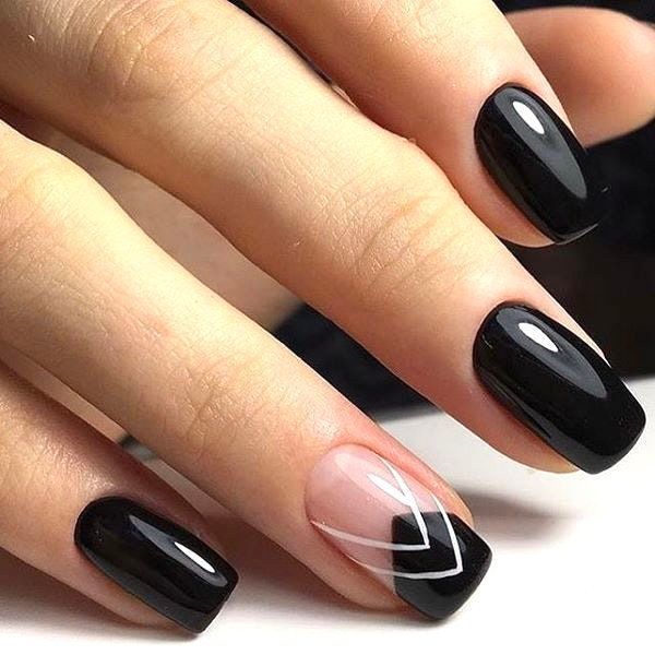 The intricate white lines on these glossy black nails are reminiscent of the precision of modern art. This design adds a touch of sophistication and is perfect for those who appreciate the trendy interplay between art and fashion. Pair these nails with simple silver jewelry to highlight their intricate detailing.