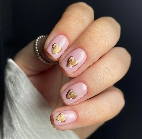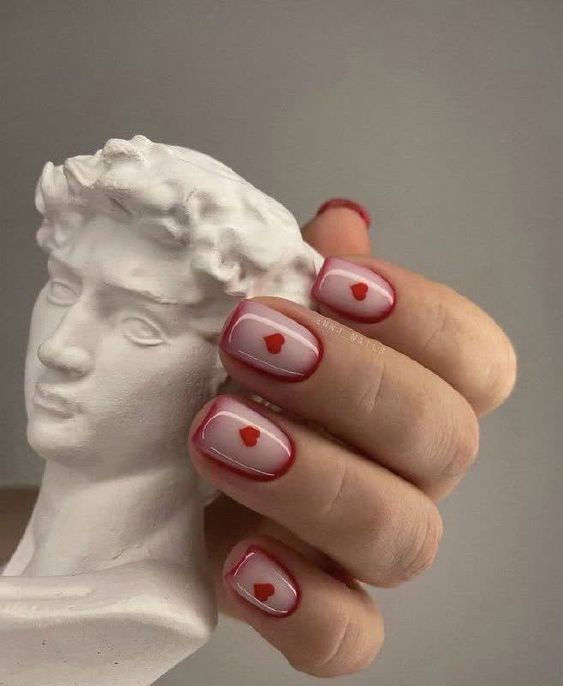 In a creative homage to classical art, these nude nails feature heart silhouettes against a backdrop of deep red polish, creating a bold contrast that’s both pretty and artistic. The design is a trendy nod to the sculptures of ancient times, perfect for those who appreciate a cultural reference in their fashion choices. It’s a classy and simple way to wear your heart not on your sleeve, but on your nails, making a statement of love and appreciation for beauty.