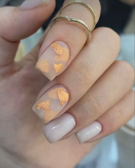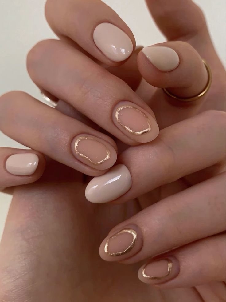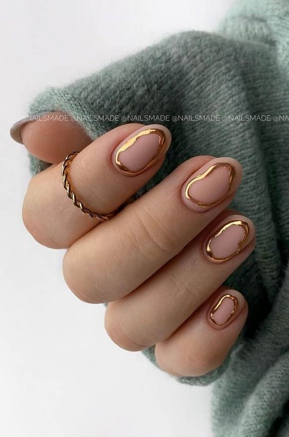 The allure of nude nails summer 2024 is beautifully captured in these nails, featuring gel polish adorned with gold foil following the natural contours. It’s a design that’s both classy and understated, suggesting a modern take on the colors short nail trend. The gilded outline offers a simple yet trendy take on elegance, making it a versatile choice that transcends day-to-night looks with ease.