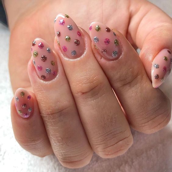 The final flourish to our nude nails summer 2024 collection is like a celebration on your fingertips. The nude gel base is sprinkled with colorful confetti-like speckles, evoking the joyous spirit of summer parties. It’s an excellent choice for those who embrace the trendy and playful side of fashion. These nails are pretty, simple, and utterly cute, a visual representation of summer’s carefree days and vibrant nights.