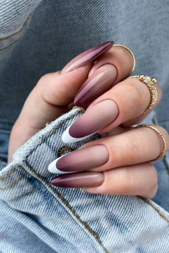 This design celebrates the power of contrast with its bold oval shape and the stark white tips that stand out against the color of the natural nail. It’s a modern take on the classic French tip, offering a simple yet trendy statement. This style is a testament to the 2024 theme of bold minimalism, perfect for the woman who adores a contemporary twist on a timeless look.