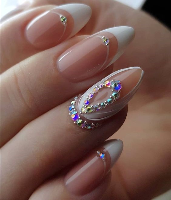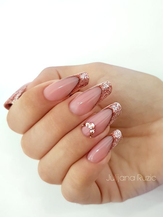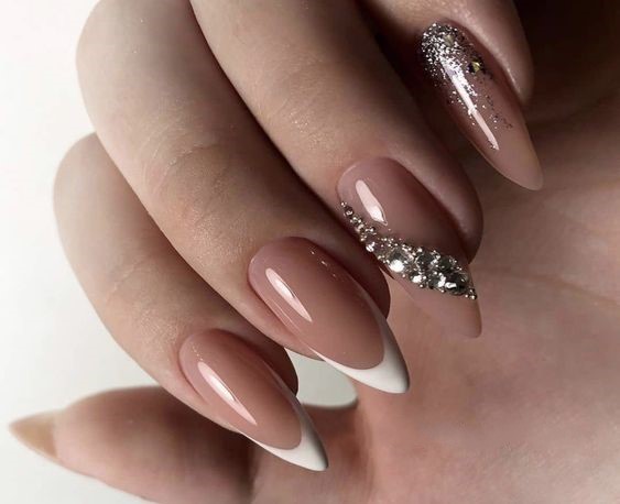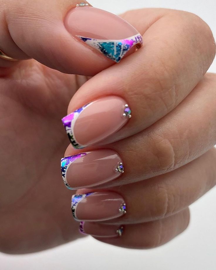 This design takes the French manicure into a futuristic direction with its clear tips. The pink base transitions into a transparent tip, decorated with scattered crystals that catch the light like tiny stars. It’s an ethereal and trendy look that’s perfect for the minimalist who still wants to make a subtle statement.