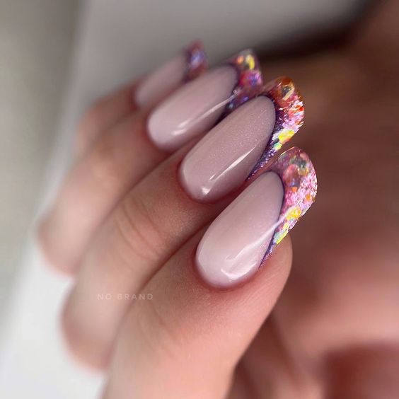 The almond nails here offer a subtle nod to the classic with a twist. The pink base is timeless, but the silver glitter on the tips adds a modern and trendy touch, perfect for both day and night events during the summer season.