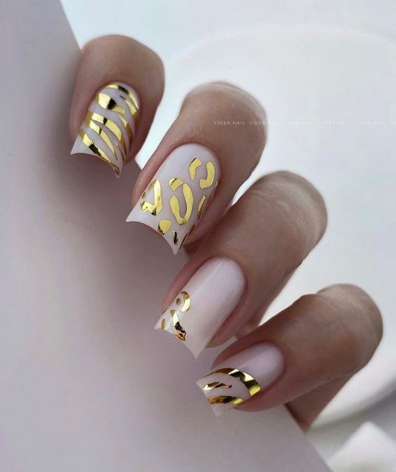 For those who prefer a touch of opulence, these white nails with golden foil accents are like the treasures of the deep blue sea brought to the surface. The alternating patterns of solid gold and abstract waves are a bold statement, perfect for a vacation ocean theme party or a glamorous beach wedding, capturing the 2024 gel and acrylic trends flawlessly.