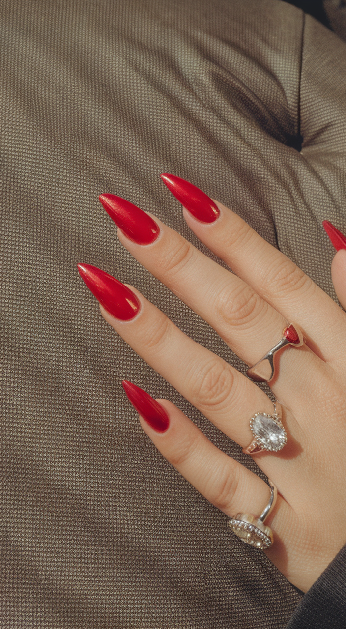#15 Fiery Red Stiletto Nails for a Bold Look