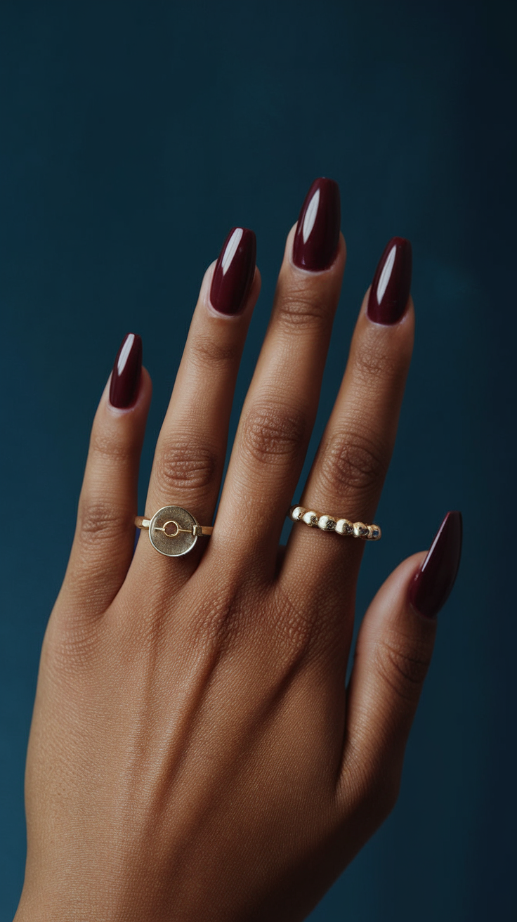 Burgundy is a classic graduation polish choice that complements a variety of decoration styles and formal outfits. The glossy finish on these nails enhances the deep red tones, creating a sophisticated and confident look. This solid color stands out against both dark and light gown colors, making it an excellent option for those looking for ideas that are both traditional and bold. A chic and timeless choice for a memorable graduation day.