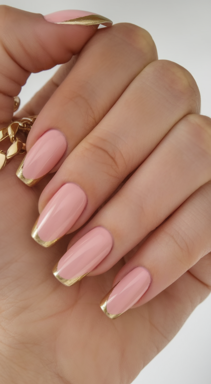 #7 Minimalist Gold Striped Tips for Subtle Elegance