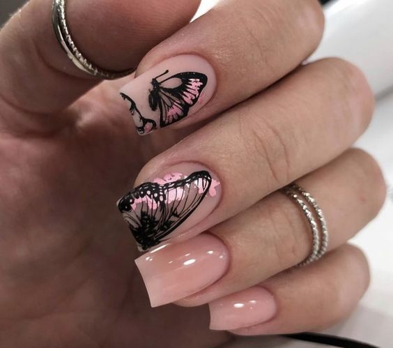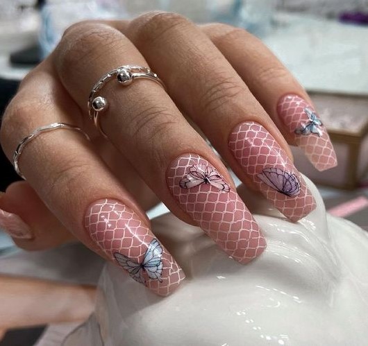 Mosaic patterns have always been a symbol of intricate beauty, and when combined with the delicate touch of butterfly wings, they make for an exquisite nail art design. These pink mosaic nails with their butterfly accents are a dreamy choice for anyone looking for ideas for short nails or an extension of their whimsical spirit onto a gel natural long nail canvas.