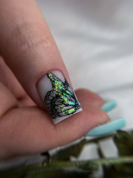 Capture the delicate beauty of butterfly wings on your nails with this shimmering design. The interplay of light and color on these nails is reminiscent of a butterfly’s flight through a sunlit garden. It’s a gel masterpiece that brings the natural beauty of the outdoors to your fingertips, ideal for both ideas for short and long nails.