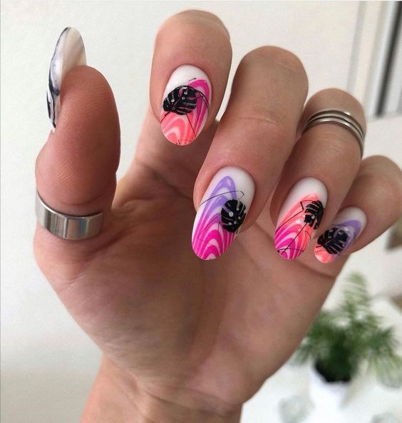 For those who see their nails as a canvas for self-expression, this abstract design offers a bold and artistic approach. The swirls of pink and purple create an eye-catching backdrop for the striking black spider accents. This look is a testament to the designs short nails trend, but it also makes a strong statement on longer nails.