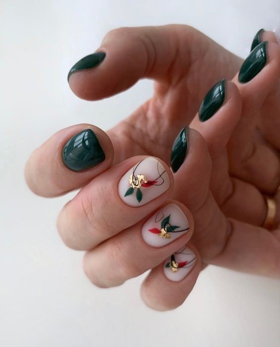 Styling Tip: Opt for an ivory sweater dress to make these nails stand out. The green will pop, and the gold will add just the right amount of sparkle.