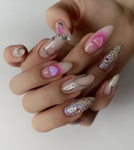 For those who appreciate the finer things, this set offers a blend of ethereal swirls and sophisticated metallic accents. The translucent base adorned with pink and silver swirls exudes a sense of luxury and artistic flair. The occasional use of metallic bands adds an edgy contrast to the dreamy background, making it an exquisite choice for an elegant evening under the stars.