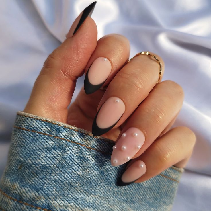 Combining minimalist black and white with negative space, this acrylic coffin design exudes modern sophistication. Embellished with delicate pearls, it adds a touch of elegance to any outfit. This manicure is perfect for the fashionista who loves to merge classic chic with contemporary edge, suitable for a high-powered meeting or an exclusive gallery opening.