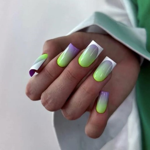 Inject some zest into your summer look with these coffin nails that blend a punchy lime green into a delicate purple. The ombre effect is both trendy and fun, perfect for adding a pop of color to a neutral outfit or pairing with citrus-hued accessories for a coordinated ensemble that screams summer.