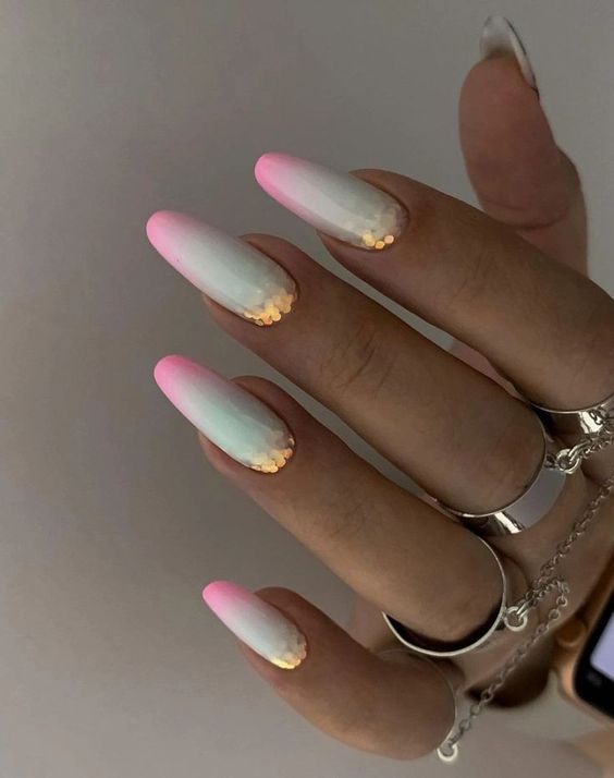 Dawn’s First Light: Soft Ombre with a Glitter Kiss