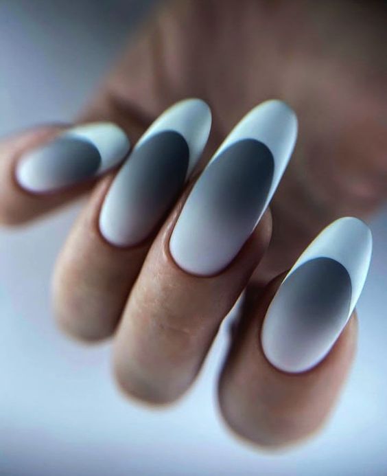 Here’s a nail design that celebrates the mysterious side of summer. A smokey grey fades into a clean white, offering a classy and trendy take on the ombre trend. These almond nails are perfect for complementing a monochromatic outfit or adding a dash of intrigue to a colorful ensemble.