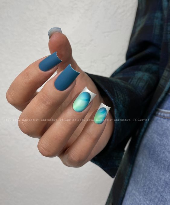 These classy almond-shaped nails are reminiscent of tranquil ocean waves. The blue matte finish transitions into a glossy seafoam, creating an ombre effect that’s both trendy and calming. They’re a perfect match for a breezy maxi dress or a sophisticated linen suit, encapsulating the 2024 gel almond trend with poise.