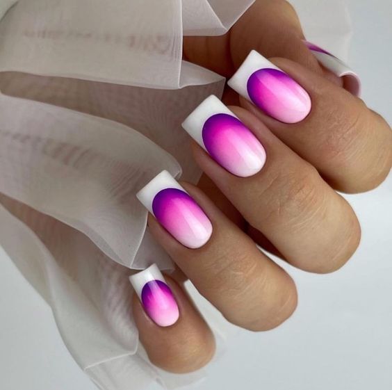 Echoing the sublime hues of a summer sunset, these pink and white ombre nails offer a romantic twist suitable for a wedding or an elegant evening out. The ombre effect is undeniably trendy, fading from a rich fuchsia to a gentle pink. Whether paired with a cocktail dress or a chic blouse, these nails add a touch of classy sophistication.
