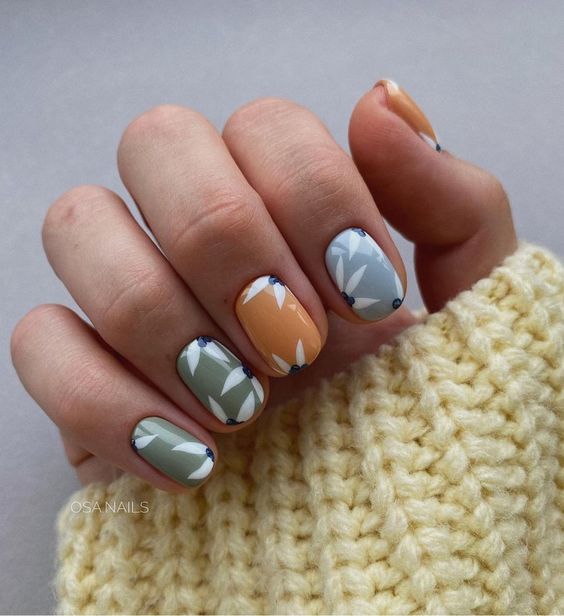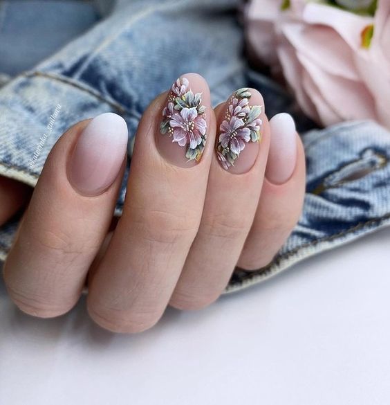 For the woman who carries the essence of a garden in her soul, these round nails with hand-painted blossoms are a dream in pastel. The intricate designs of the flowers set against a sheer backdrop embody the blooming season of summer. It’s a wearable piece of art that captures the ethereal beauty of nature, resonating with floral colors pink and the soft touch of a summer’s breeze.