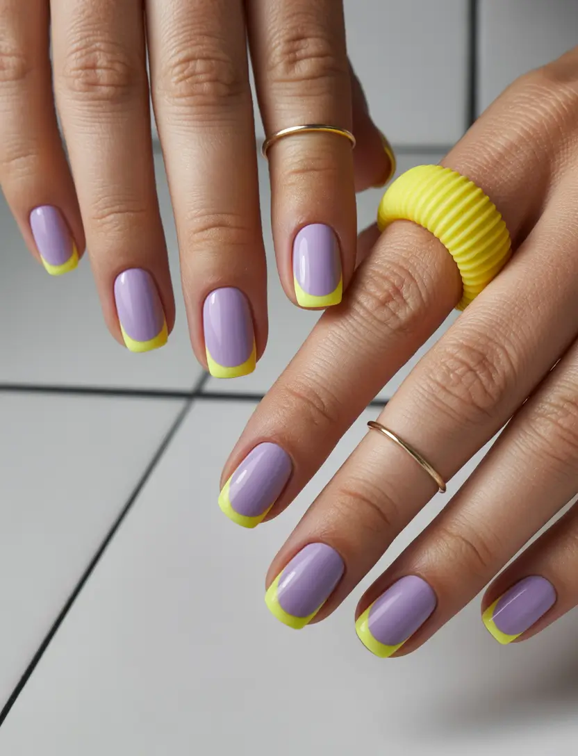 When you combine a traditional French tip and highlighter yellow, you get a bright moment of sunshine. The backbone is a chilled-out 2025 purple (really lavender, in case you keep track) topped with sharp 2025 yellow lines surrounding every tip. It’s easy, chic, and has a bright pop of color that screams summer and adventure.