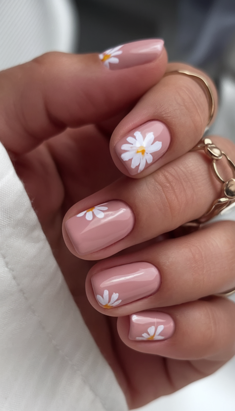 #8 Delicate Daisy Accents on Soft Pink Nails