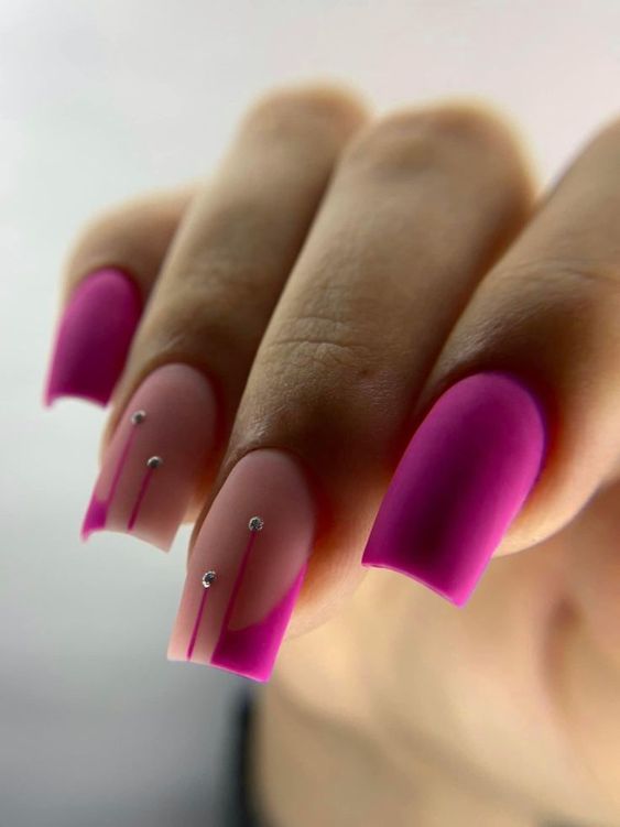 In a dazzling display of vibrancy, these long square nails command attention with their neon pink hue, a color that screams summer. Embellished with delicate silver piercings at the tips, they are a testament to the wearer’s daring and playful spirit. The bright color is not just a choice; it’s a declaration of confidence and a nod to the simple short nail trend, making it an instant favorite for those seeking to add a pop of colour to their summer adventures.