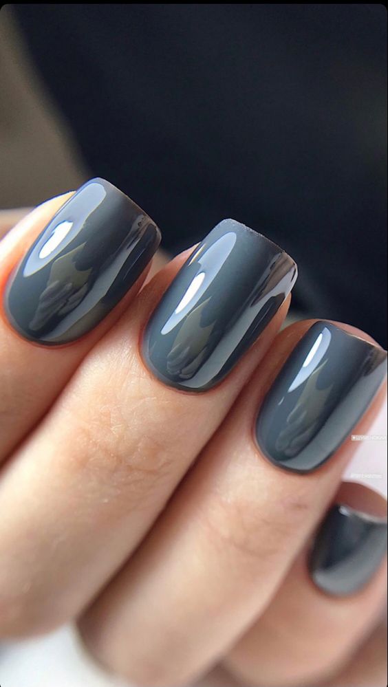 A smoldering chrome effect graces these medium square nails, creating a mesmerizing smoky charcoal appearance. The fluid, marbled design is a sophisticated choice for the creative professional, a simple yet trendy short nail that’s as dynamic as the season itself. This style is the inspiration for those who wear their creativity on their fingertips.