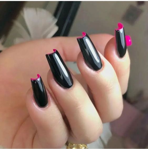 For those who revel in the night’s mystery, these long square nails offer a dramatic flair. A glossy black base is accented with a sliver of pink at the cuticle, giving a modern twist to the French tip. This design is a bold inspiration for the summer evening soirees, combining classic sophistication with an edge of contemporary inspo. It speaks to the chic, urban woman who confidently crafts her style narrative.