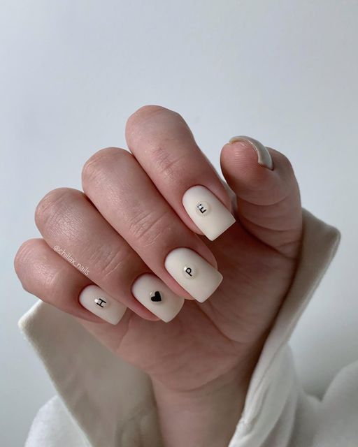 In a world where every detail counts, these medium square nails stand out with their white canvas punctuated by tiny, typographic designs. Each letter and small heart tells a story, making this a personalized nail art design for those who appreciate the beauty in brevity. These nails are for the literary at heart, blending simple short elegance with a narrative twist.
