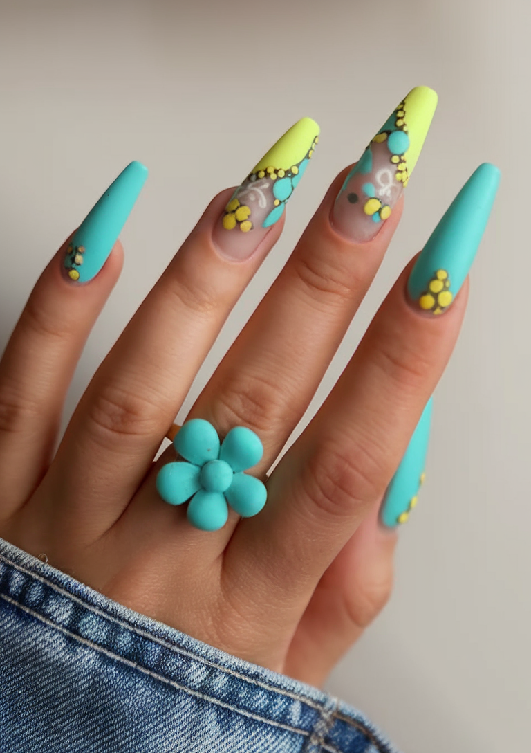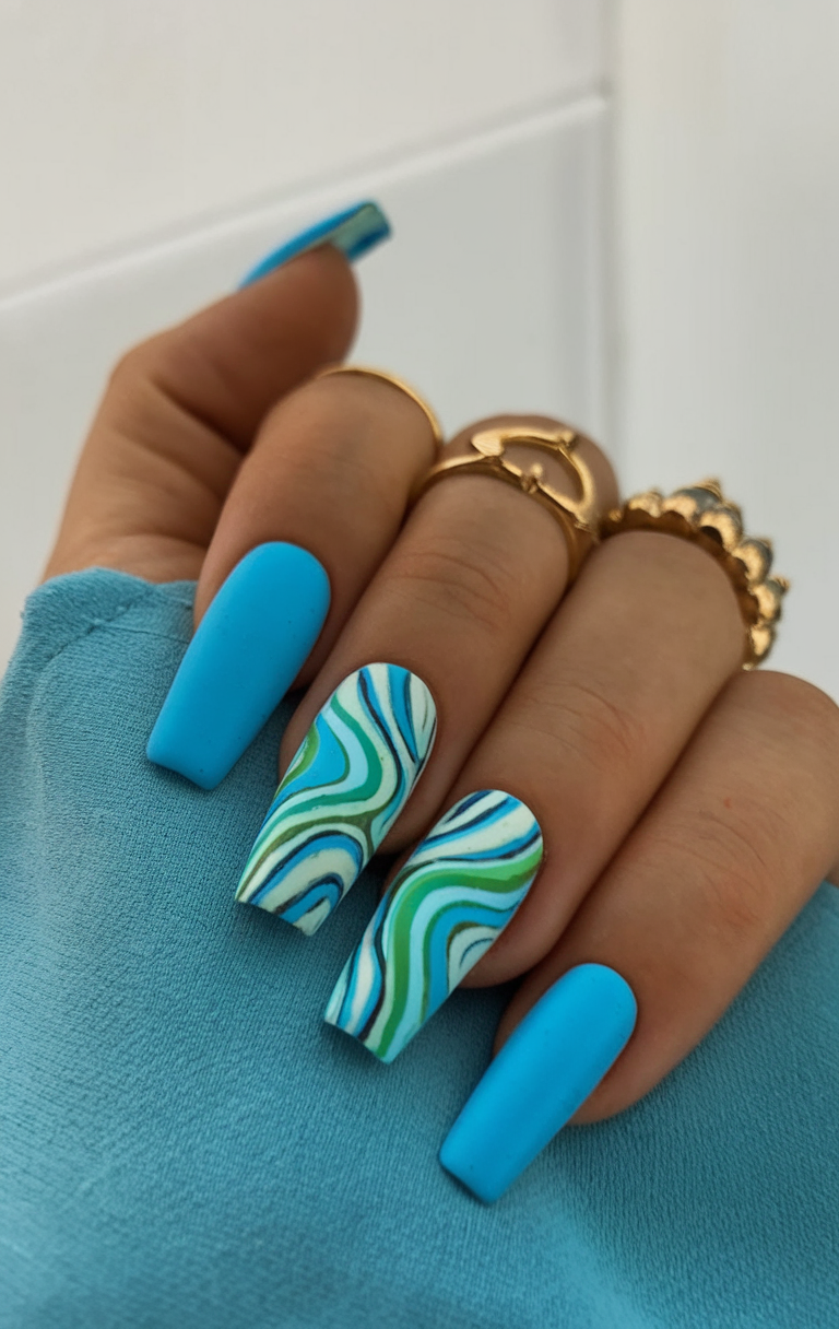 #11 Blue and Green Swirl Nail Art with Matte Finish