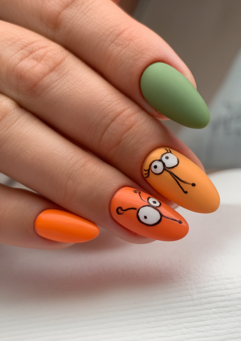 #3 Playful Matte Orange and Green with Cartoon Accents