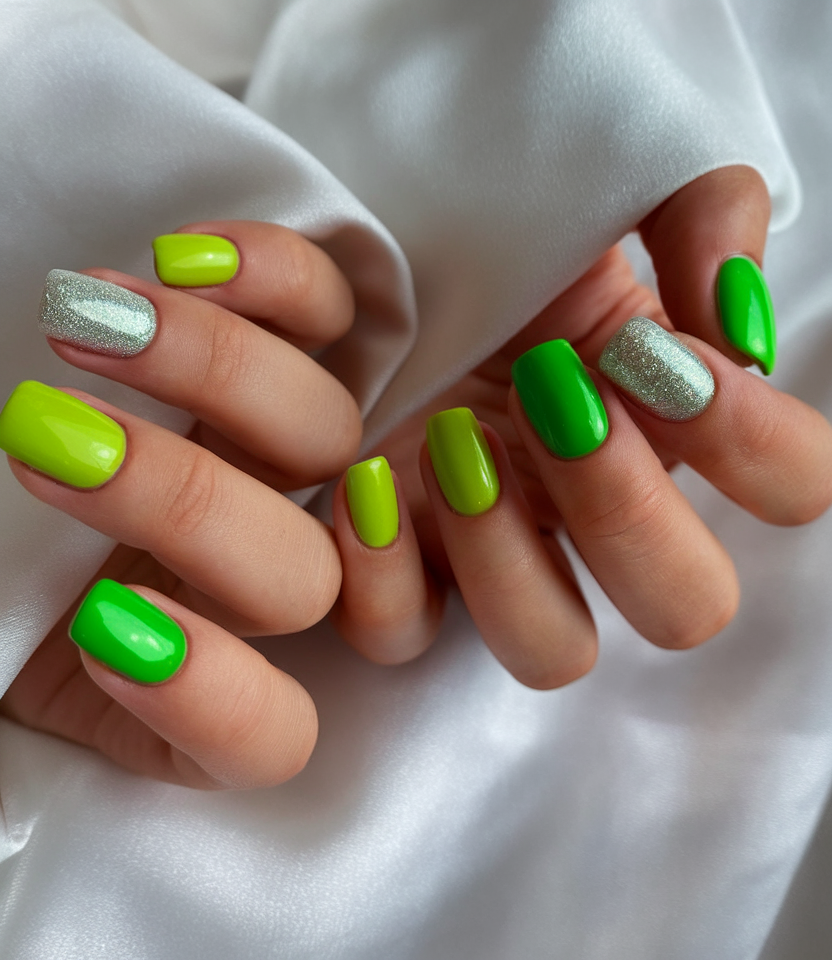 #26 Bold Green and Glitter Mix for a Fresh Look