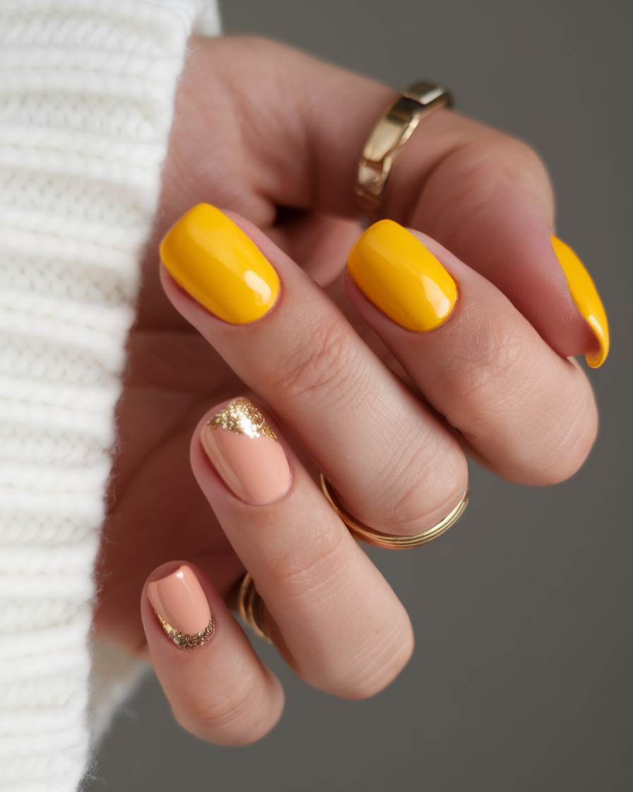 #19 Bold Yellow and Nude with Gold Glitter Accents