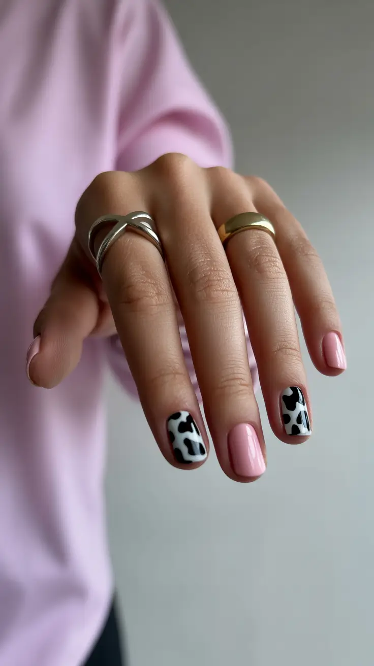 My process is simple: apply two thin coats of pink, cure fully, then add irregular shapes using a detailing brush. The trick is not aiming for symmetry. Editorial nail artists often mention that imperfect placement creates movement, and once I stopped overthinking placement, the design suddenly felt cooler.