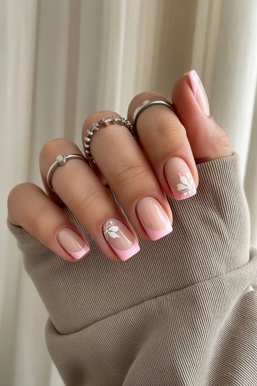 Minimal Pink French With Delicate Floral Details