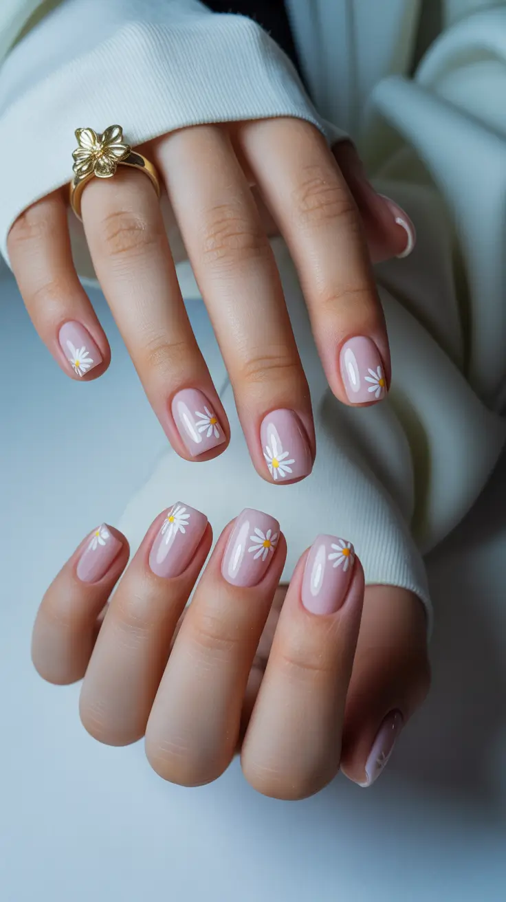 Every year there’s one manicure that instantly signals the season, and daisy nails always return – but in a softer, cleaner way. The muted pink base keeps the design modern, while tiny white flowers add a cheerful, almost nostalgic touch. It’s cute without being childish, which is harder to achieve than it sounds.