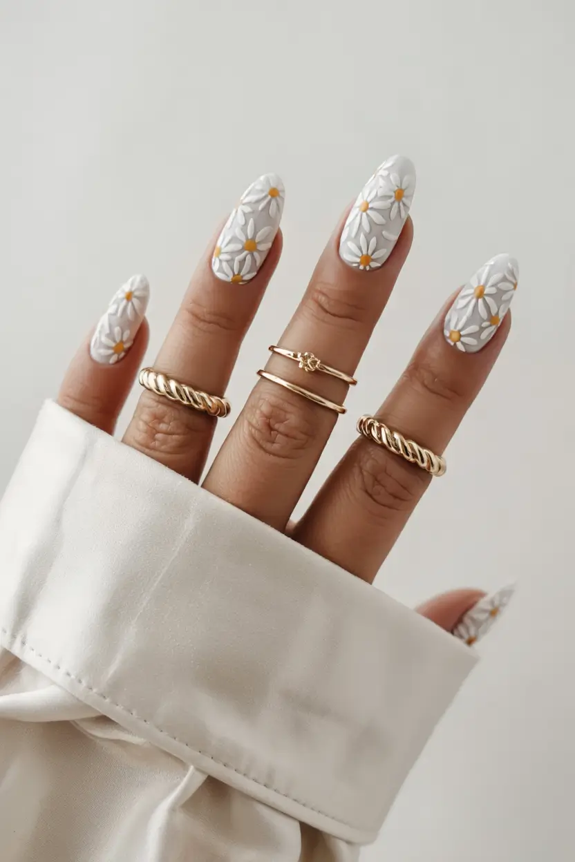 This blossoming 3D White Daisy Manicure consists of floral motifs resting on soft white tones. The round shape combined with full coverage makes your fingertips look like they are filled with fields of flowers. The 2025 short design offers a fresh, fun look that makes it perfect for holiday events and garden parties. Nail artists will find the most cheerful and intricate floral designs here.