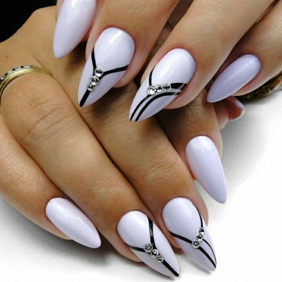 Enter a dreamy state with these long lavender almond nails that exude a serene and trendy elegance. The simple yet captivating addition of black lines and silver gems adds an aesthetic charm to this French tip variation. These nails are a statement piece for any summer event, whether it be a casual gathering or a more formal celebration. They offer a cute and aesthetic complement to any outfit, making them a versatile addition to your summer nail wardrobe.