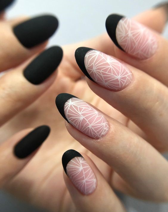 A trendy marriage of simple matte black and intricate geometric designs over a blush pink, these almond nails are a testament to summer 2024’s diverse styles. They’re cute, simple, and absolutely aesthetic, ideal for those who enjoy a sophisticated, yet baddie look. These nails could effortlessly complement any ensemble, from basic tees to trendy jumpsuits.