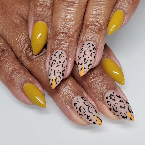 Embrace the wild side of summer with these long almond nails featuring a bright yellow base and a spunky leopard print. The neon accents give a pop of color that is undeniably trendy, fitting perfectly with the baddie mood of summer 2024. This design screams confidence and will pair magnificently with both bright summer hues and the basic blacks and whites of your wardrobe.