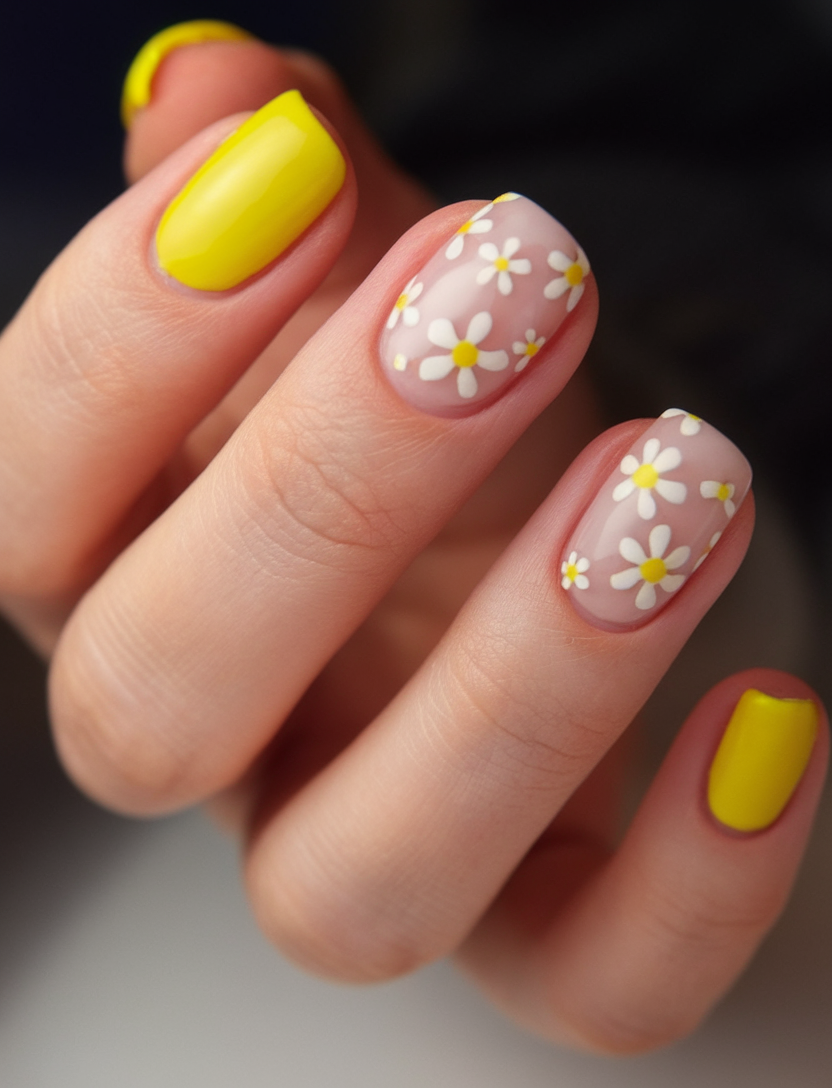 #6 Vibrant Yellow Ombre with Daisy Accents