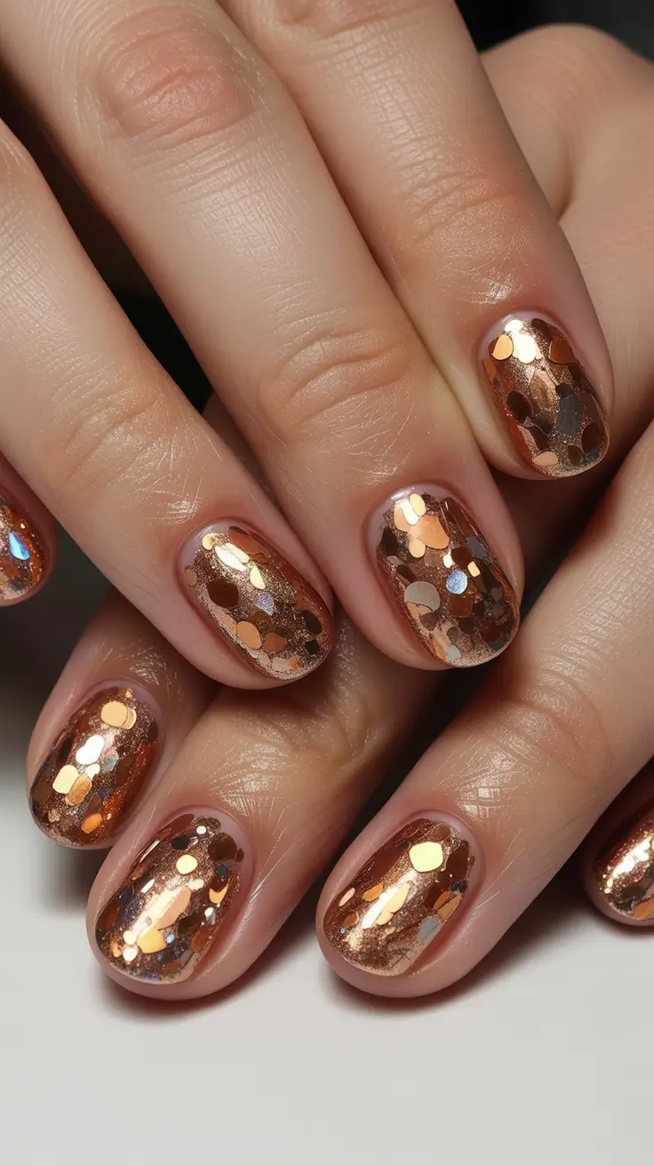 There’s a quiet authority in a copper manicure that feels both regal and leaf-crunching cozy. A smooth metallic base glows like dusk-reflected brass, while translucent copper flecks slip on over the top, mimicking the flash of sun through scarlet-tipped branches. The result is a manicure that nods to grown-up glam but still invites double-tapping. The finish feels luxurious, but the layers whisper playful mystery; it’s the nail equivalent of a velvet scarf with a cheeky plaid lining. Talk about a manicure that can close a boardroom deal and still insist later on a fireside hot cider.