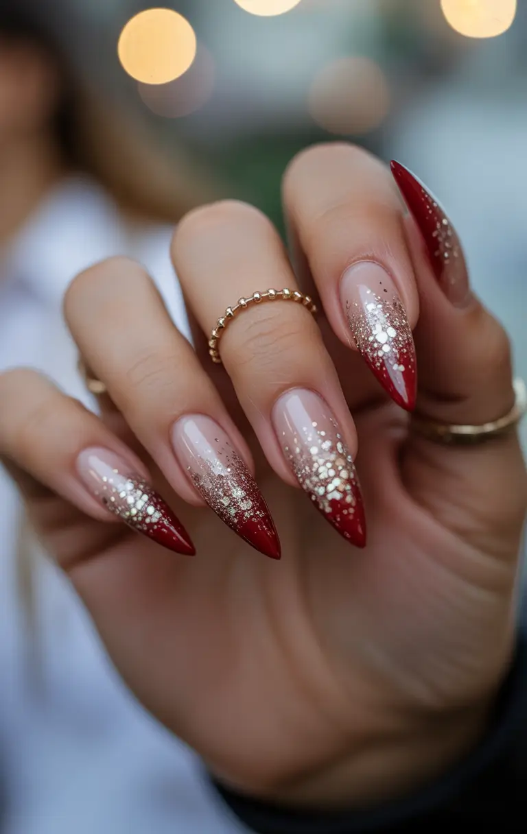 Grab a mini sponge, load it with both crimson and ginger, stamp the gradient on, then tap the same method only with glitter where you want it most. Julie Kandalec reminds clients that gradients “catch minds and eyes”—they translate the wave of a sunset into a nail size that’s never out of date, a trick that plays fashion and Mother Nature in one swipe.