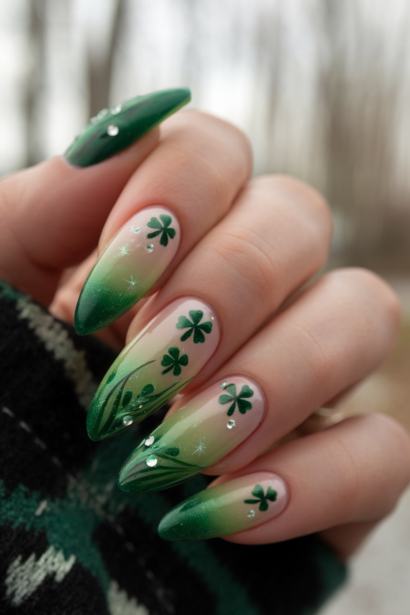 #13 Ombre Green Clover Nails for St. Patrick’s Day