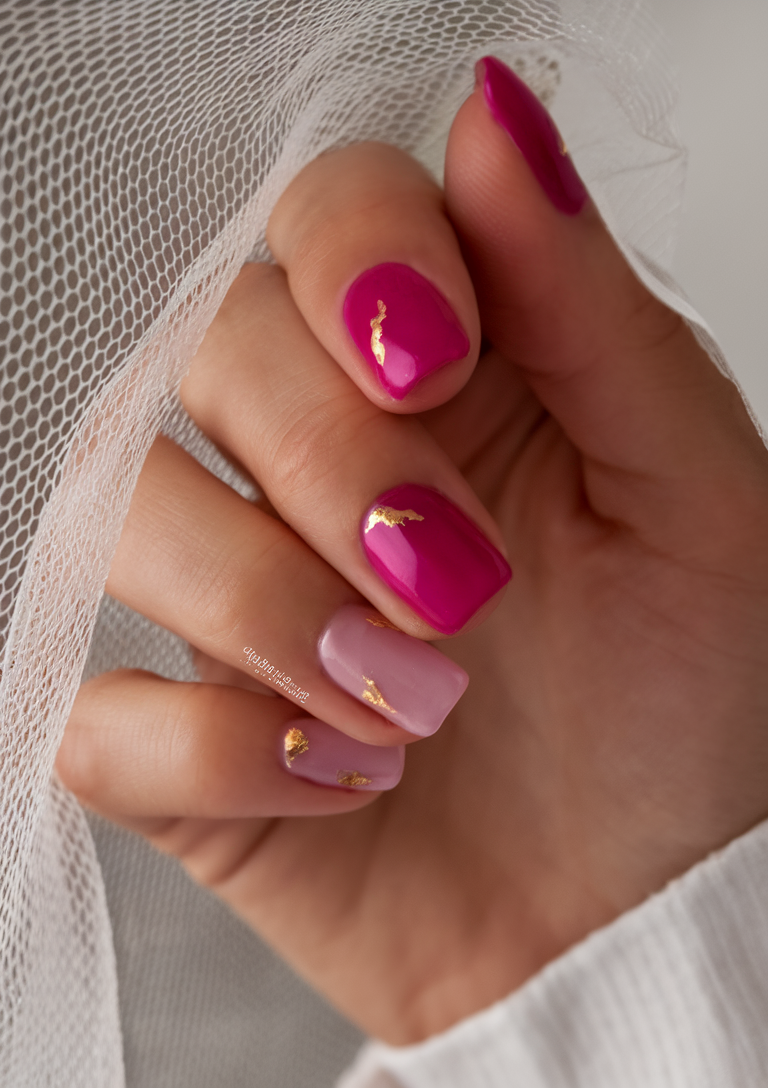 Soft and feminine, this spring pink manicure blends short square and spring square nail styles with a gel finish. The combination of pink and soft purple shades adds depth, while delicate gold foil accents give a touch of elegance. Ideal for Easter or any springtime occasion, this acrylic simple design keeps things sophisticated yet fresh for 2025.