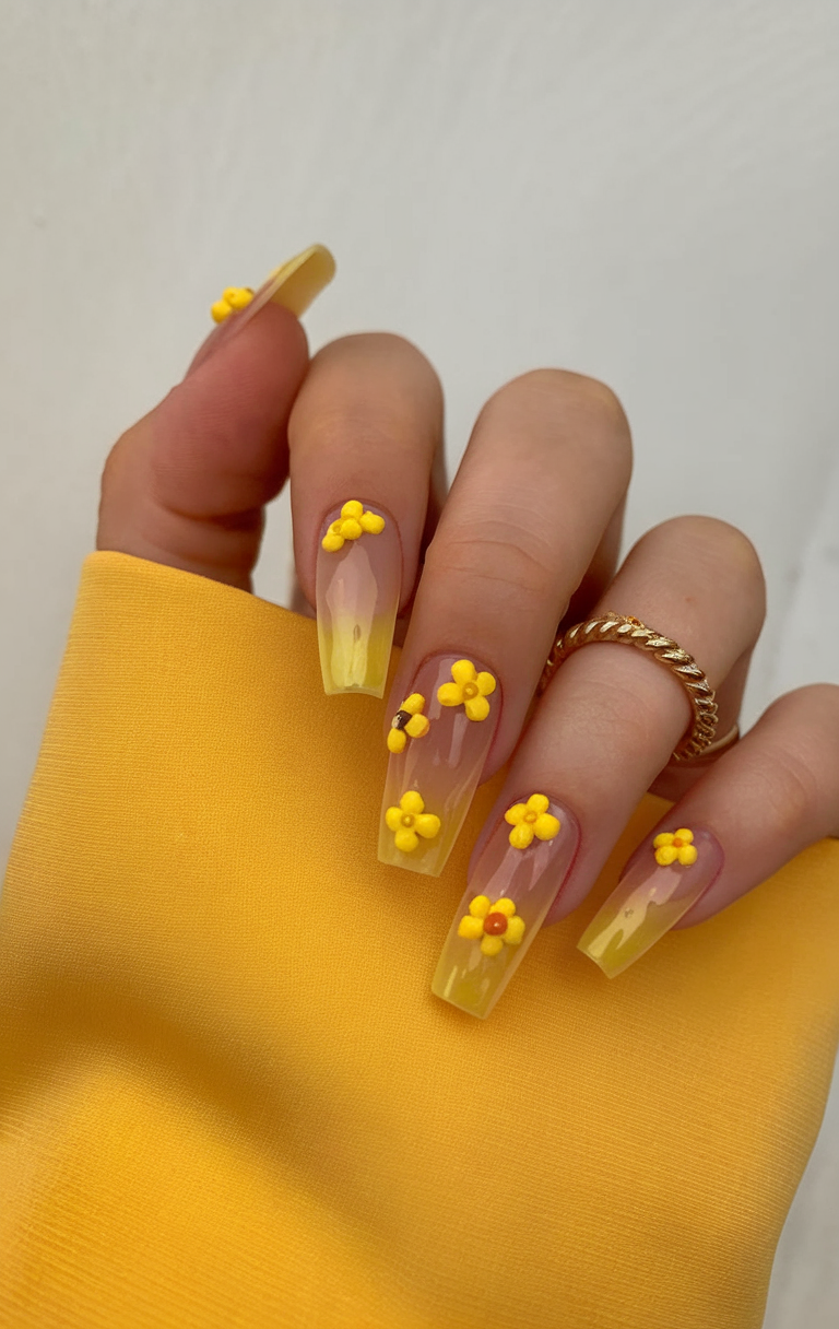 #22 Yellow Floral Ombre for a Fresh Spring Look