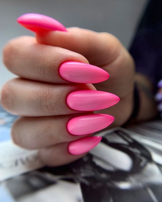 True to the neon trend, these nails are not for the faint-hearted. The vivid, almost fluorescent pink creates a look that’s both bright and fun. These nails are sure to be a conversation starter at any summer event, embodying a fearless and playful spirit.
