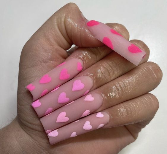 For those who wear their hearts not on their sleeves but on their nails, this cute design is a dream. Pastel pink serves as a canvas for an array of soft hearts, creating a look that’s whimsical and simple. It’s a fun way to show a little love, perfect for a sweet summer date or a casual brunch with friends.