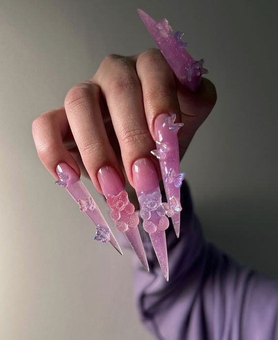 For lovers of art and design, these nails offer an aesthetic that’s both classy and cutting-edge. The clean lines and simple ombre effect from pink to milky transparency suggest a minimalist aesthetic that’s very 2024. This style is for the modern woman who appreciates art in its most wearable form.